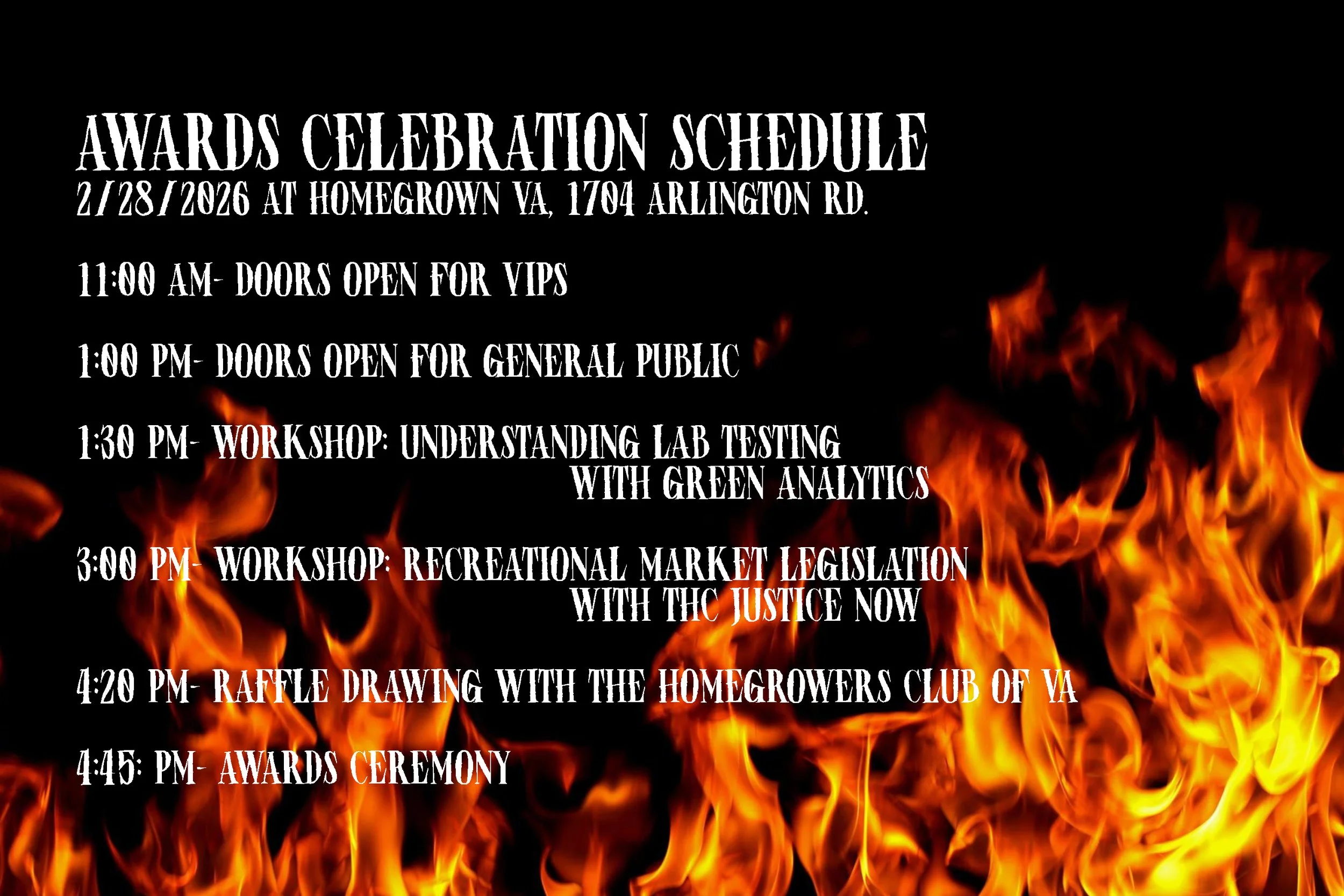 Doors open at 1:00 (11:00 for VIPs) at Homegrown VA, 1704 Arlington Rd
